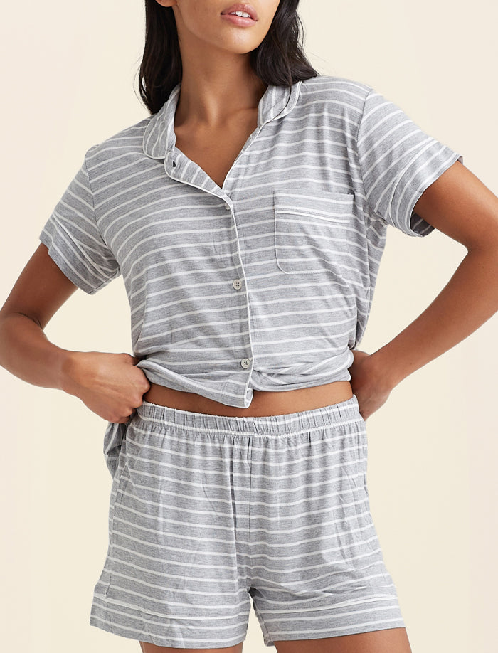 Our Kate Boxer Pajamas will be your new favorite. Made from the luxuriously soft Modal fiber it feels like you are lying in feathers! Now available in a beautifully delicate Grey Stripe